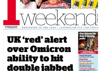 The i leads with the latest on the Omicron coronavirus variant, saying half of the UK’s first batch of infections were in people who had been double jabbed.