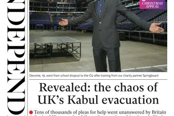 The Independent also leads with a story about failures in Whitehall crippling the government’s Afghan evacuation operation, citing whistleblower and former Foreign Office official, Raphael Marshall.