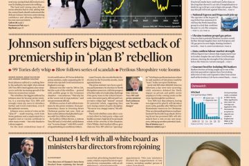 The Financial Times leads with what it calls a “crushing blow” to Boris Johnson’s authority after almost 100 Tory MPs voted against vaccine passports.