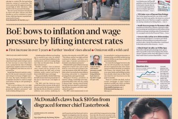 Financial Times Front Page 17th of December 2021