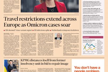 The FT reports on travel restrictions being extended in Europe due to the Omicron variant – with Germany, for example, declaring the UK a “virus variant region”.