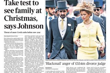 The Daily Mirror leads with the news Boris Johnson has confirmed there will be no more curbs ahead of Christmas.