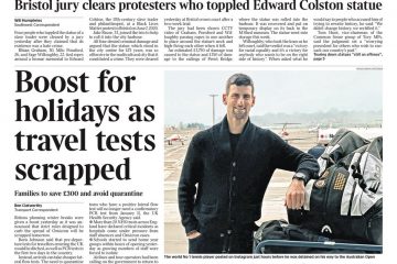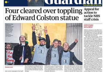 The Telegraph says four Black Lives Matter activists who admitted toppling the statue of Edward Colston in Bristol walked free from court after a jury “agreed they had committed no crime”.