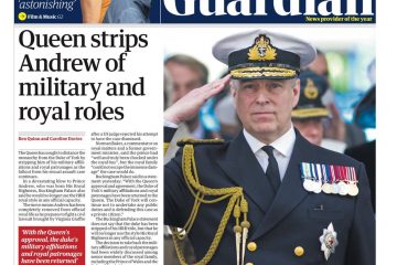 The Guardian splashes on the Queen seeking to distance herself from Prince Andrew, stripping him of his military and royal roles.