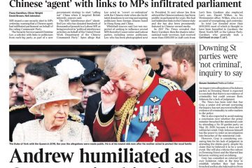 The Metro reports Prince Andrew has been “booted out of the royal family” as it distances itself from the scandal of his sexual assault lawsuit in the US.