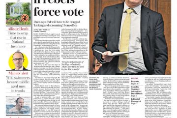 Tory MP David Davis urging the prime minister to “in the name of God, go” features on the front of the Daily Mirror, which says Boris Johnson is “hanging by a thread”.