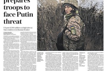 US President Joe Biden is preparing to send thousands of troops to eastern Europe and the Baltic states to deter a Russian invasion of Ukraine, the front page of The Daily Telegraph states.