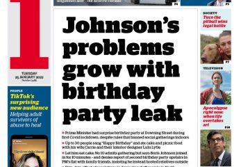 Claims that Prime Minister Boris Johnson’s wife threw him a surprise birthday in lockdown also make the front page of the Daily Mirror.