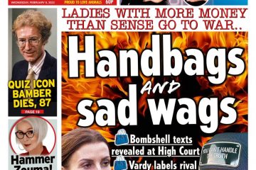 The Daily Star leads with Rebekah Vardy labelling rival Coleen Rooney a “nasty “b****” in explosive texts revealed at High Court.