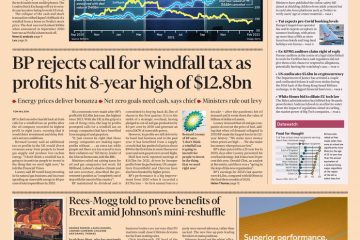 The Financial Times reports that BP’s executive has hit back at fresh calls for a windfall tax on profits after the oil company recorded its highest profit in eight years, warning that it would deter investment and delay Britain’s net zero ambitions.