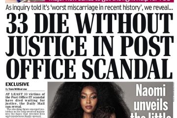 At least 33 people died waiting for justice in the Post Office IT scandal, the Daily Mail writes.