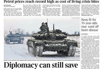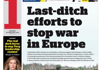 The Daily Express also leads on tensions between Russia and Ukraine, with Western leaders issuing a final warning to Vladimir Putin.