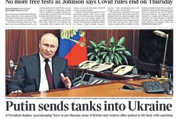 Putin sends tanks into Ukraine – that’s on the front of The Times.