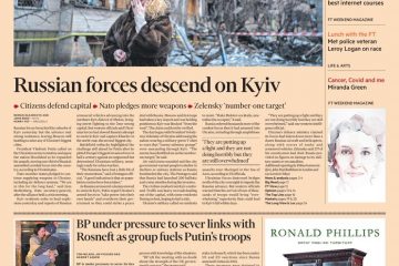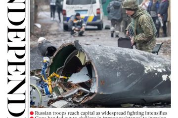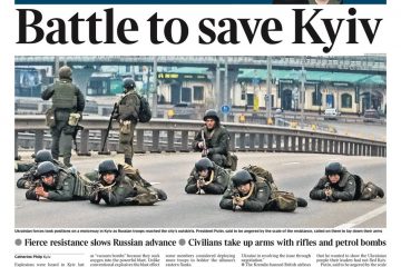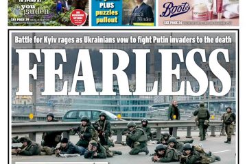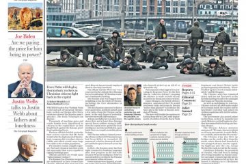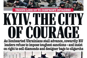The Times leads with the story of a “dark day for Europe” after Russian forces laid siege to Kyiv following a lightning attack”.