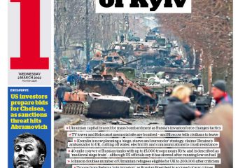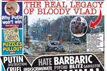 Vladimir Putin’s “bloody war intensified after a 40-mile column of Russian tanks edged closer to Kyiv”, the Daily Express reports