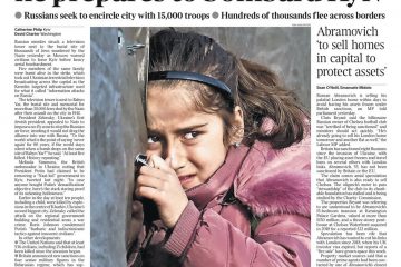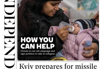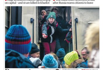 The Guardian leads with the story of how the “piercing screams of children” and “the barking of traumatised dogs” could be heard during the “desperate rush for the last train from Kyiv”.