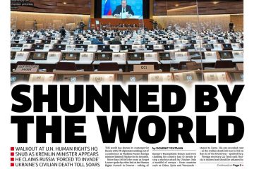 The world has shown its “contempt for Russia” after UN diplomats walked out of a conference as Vladimir Putin’s foreign minister blamed Ukraine for its invasion, the Metro reports.