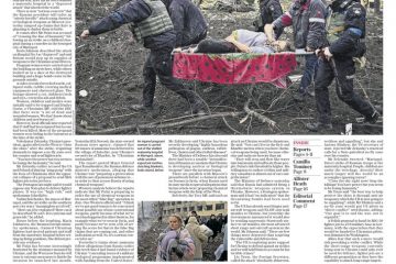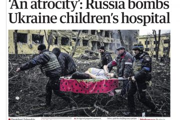 The Daily Express also leads on the hospital attack, writing that Ukraine’s president has once again urged Western leaders to impose a no-fly zone.
