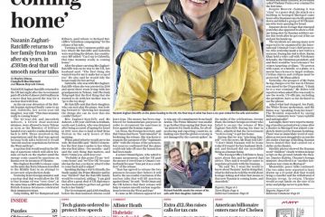 Nazanin Zaghari-Ratcliffe is returning to the UK after the British government paid off a debt of almost £400m in a move that has paved the way for a nuclear deal with Iran, says The Daily Telegraph.