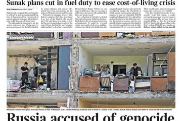 Ukraine’s president has accused Vladimir Putin of crimes that will be “remembered for centuries” – that’s on the front of the Metro.