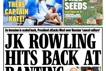 On the front of the Daily Express is JK Rowling hitting back at the Russian president after he cited her during a rant about cancel culture.