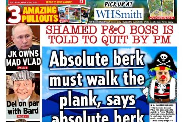Boris Johnson and the boss of P&O Ferries appear as pirates on the Star’s front page as it reports on the PM agreeing that he should quit over the illegal sacking of 800 staff.
