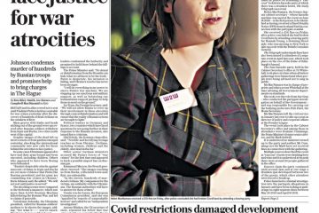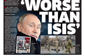 The Metro features quotes from Dmytro Kuleba, Ukraine’s foreign minister, who has branded Russia “worse than ISIS”. Mr Kuleba was quoted saying that Vladimir Putin’s army has killed civilians “because they wanted to” and the number of civilian deaths has “gone into hundreds”.