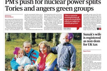 Boris Johnson will put nuclear energy at the heart of the UK’s new energy strategy on Thursday – but ministers have refused to set targets for onshore wind and vowed to continue the exploitation of North Sea oil and gas, The Guardian reports.