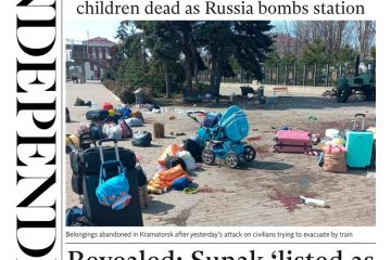 The Kremlin has been accused of carrying out a “monstrous” war crime after a Russian ballistic missile hit a crowded railway station in eastern Ukraine – killing at least 50 people, including four children.