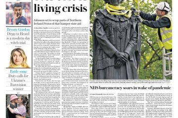 On the front page of The Daily Telegraph, Boris Johnson claims the Northern Ireland Protocol is preventing Westminster from easing the cost of living crisis.