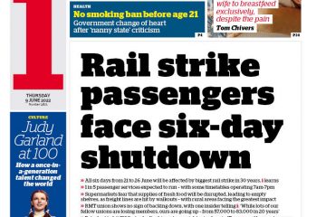 The nationwide rail strike will disrupt train service for six days, the i reports. It says just one in five trains are expected to run between 21 and 26 June.