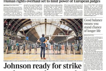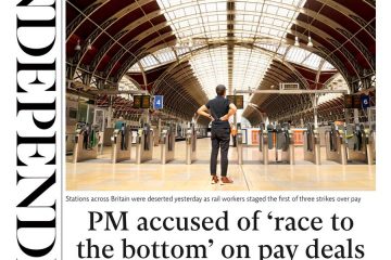The Times reports that Boris Johnson believes he must win his battle with the unions over the rail strike – and expects the stand-off to last months.