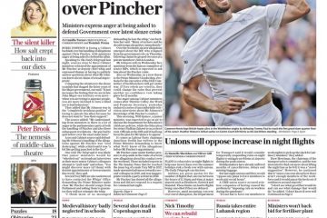 There is a Cabinet backlash against Boris Johnson over the allegations against MP Chris Pincher – that’s on The Daily Telegraph.