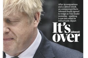 “It’s (almost) over”, says the front page of The Guardian following Boris Johnson’s resignation.
