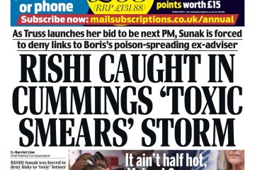 The Daily Mail reports that Rishi Sunak denied links to Dominic Cummings after posting “poisonous” comments online about his rivals for the Tory leadership.