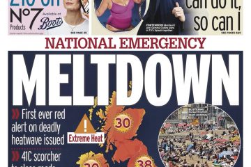 Temperatures of 41C will force roads to close, schools to shut, and the NHS to prepare for casualties, according to the Daily Mirror.