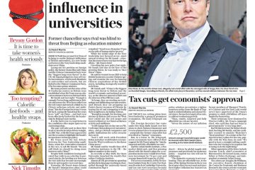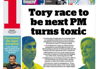 The Daily Telegraph features the Tory leadership race squabbles over China and Liz Truss’s plans to cut taxes, which appear to have been approved by some “prominent” economists.