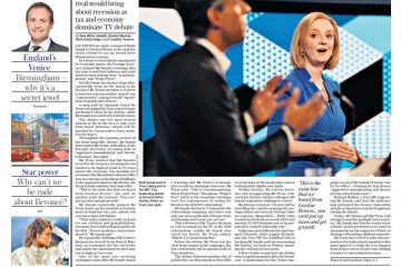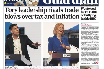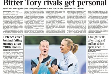 In the Daily Telegraph, Liz Truss compares Rishi Sunak and Gordon Brown, saying Mr Sunak’s refusal to cut taxes would cause a recession.