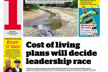 The i’s headline says the outcome of the Conservative leadership contest will be determined by cost of living plans. It is said that Liz Truss is ruling out more direct support, but Rishi Sunak may be planning more measures, such as increasing benefits.
