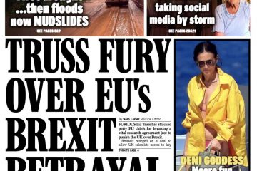 Brexit is the Daily Express’s lead story. Angry Liz Truss has attacked petty EU chiefs for breaking a crucial research agreement to punish Britain over Brexit, according to the publication.