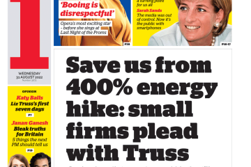 It focuses on the UK’s cost of living crisis. It claims that small firms are pleading with PM-challenger Liz Truss not to raise their energy bills by 400%, which could lead to mass closures.
