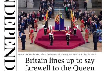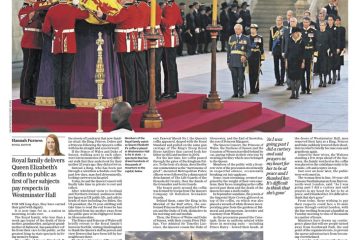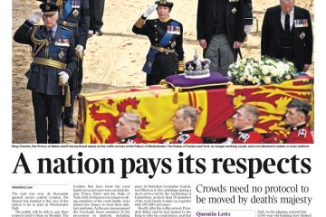 According to the Financial Times, thousands of mourners lined central London streets to watch Queen Elizabeth’s coffin procession to Westminster Palace.