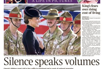 The Times chose a photo of the new Princess of Wales visiting Commonwealth troops at Pirbright in Surrey – who are preparing for Monday’s funeral.