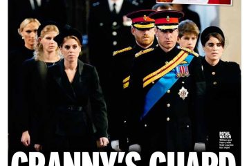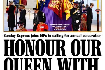 An image of the Queen’s grandchildren holding a vigil in Westminster Hall around her coffin fills the Sunday Mirror’s front page.