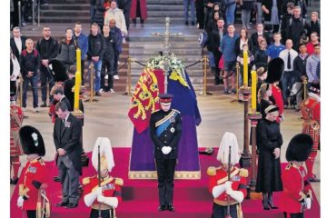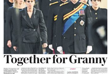 It is reported in the Sunday Telegraph that the Queen’s grandchildren made history as they “walked side by side to honor her memory in an emotional vigil”.