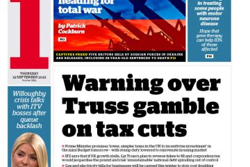 2022-09-22 i Front Page 22nd of September 2022i leads with a warning about Liz Truss’s tax cuts gamble. By FindSales, 4 yearsSeptember 21, 2022 ago