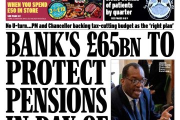 A £65bn debt buy-up by the Bank of England was announced to save pension funds threatened by rising interest rates, according to the Daily Express.