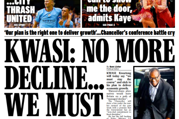 Daily Express reports that Kwasi Kwarteng will say “we must stay the course” on Monday to deliver economic growth.