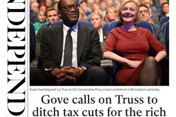 A front page of The Independent quotes Michael Gove as saying that Liz Truss’ mini-budget has the wrong values.