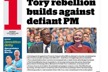The i reports that Conservative MPs are trying to stop Liz Truss from abolishing the top rate of tax for people earning more than £150,000.